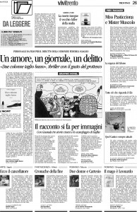 Dopo i pezzi usciti sull’Arena, il Giornale di Vicenza, BresciaOggi, Mattino di Padova, Tribuna di Treviso e Nuova Venezia (inseriti nel capitolo 3 della fascia qui a destra, il capitolo «io l’ho letto»), è uscita ieri sul Trentino, quotidiano del gruppo Finegil, una recensione su «Due colonne taglio basso».
