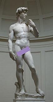 Le statue espongono le nudità di Adamo, Caino e Abele.
