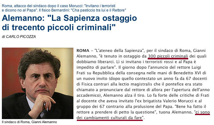 …che Alemanno tuoni “ci sono dei cambiamenti culturali da fare” suona agghiacciante come una minaccia…