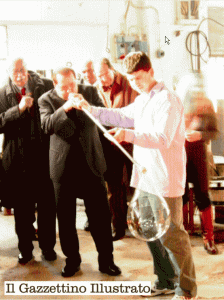 Il cavaliere è un abituèe della prestigiosa fornace di Gino Seguso, figlio dell’Archimede che ha contribuito alla storia di Murano del secolo scorso.
