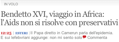 non e’ incredibile che la chiesa cattolica si occupi di preservativi e attivita’ sessuale delle persone? A me sembra cosi’ assurdo. Devo fare mente locale per ricordarmene il motivo.