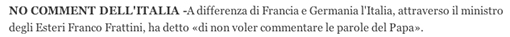 Naturalmente, secondo quel luogo che inspiegabilmente i giornali, genuflessi, chiamano «santa sede» utilizzando perfino le iniziali maiuscole, le parole del papa sono state stravolte.