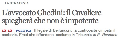 No! Ghedini dice che la viril possanza del suo Sire sarà convenientemente dimostrata – onde spubblicar l’impudico assalto dell’Unità – davanti al signor giudice!