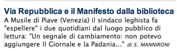 Questa storia della apolicità degli spazi pubblici è il prodromo di ogni dittatura culturale. Già l’ho vissuta dal di dentro una volta, ossia da una istituzione dove questi loschi figuri provarono a rivedere appunto gli abbonamenti sul principio politico. Ma è proprio insostenbile!