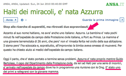 Che fortunona, eh, per la piccola haitiana Azzurra e la sua giovane mamma.