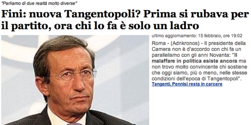 Me lo domando da giorni, da quando l’ha detto: ma che senso ha, per Fini, dire che ora chi ruba ruba per sé e non, come invece accadeva prima del 1992, per il partito?
