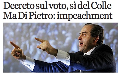 Non ho avuto la prontezza di scaricare la foto con cui ieri sera il Corriere.it illustrava il titolo di apertura su questo decreto legge sulle elezioni (qui il testo completo, con tutte le sue perle di contraddittorietà, per le quali rimando a questo breve post di Daniela Lepore).