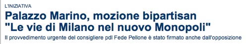 Per questo la mozione chiede alla giunta non soltanto di sollecitare l’inserimento del nome di Milano nella nuova versione di Monopoli, ma anche di avviare una campagna di informazione per invitare i milanesi a votare su Internet la propria città.