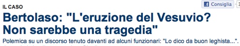 Bertolaso, con quel faccino stropicciato lì, entra nel ruolo dell’efficiente virilone nordista, dice che in fondo se anche il Vesuvio eruttasse non sarebbe poi questa gran disgrazia, e specifica con una grazia principesca che la procedura di «grattarsi» è inutile, perché egli parla da buon leghista.