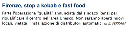Niente nuovi kebab. Ma anche niente nuovi fast food. Un colpo ai locali etnici ma anche uno ai grossi store dell’«alimentazione spazzatura» che dagli anni ’90 hanno invaso l’area dentro la cerchia dei viali. È l’operazione «qualità» scritta nella delibera approvata martedì scorso dalla giunta Renzi.