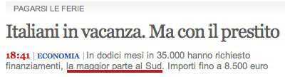 Alzi la mano chi non si fa venire un pruritino moralista anche minuscolo, leggendo che i prestiti per la vacanze vengono accesi per la maggior parte al sud…