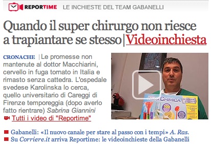 Mi ha accusata di metterle in penna cose che non ha scritto, ma anche lei non scherza: io non ho mai pensato che “verità” e “libertà” siano state date in appalto esterno (cioè che il gruppo della Gabanelli possa essere depositario della verità). Ho solo scritto che IN QUESTA SPECIFICA OCCASIONE la giornalista ha riportato cose che io so essere vere per conoscenza diretta (NB: cose che aveva trovato da sè, non su mia imbeccata). Se consulta il sito che le ho suggerito, vedrà che alla fine del 2008-inizio 2009 TUTTI i giornali (locali e nazionali) parlavano di Macchiarini come di un’eccellenza che bisognava far rientrare in Italia (e all’epoca -in verità- le sue qualità erano note solo agli addetti ai lavori che lo conoscevano. Lavorava all’Università di Barcellona e aveva fatto un intervento molto importante andato bene; avrebbe potuto essere una bolla di sapone). Nei successivi 3 anni ha fatto progressi notevoli nella sua tecnica, ha eseguito altri interventi tutti con successo, è stato invitato a insegnare in prestigiose università e le sue quotazioni a livello scientifico mondiale sono costantemente cresciute. Quando si è permesso di dire pubblicamente che -essendo stato invitato a lasciere la sua cattedra per rientrare in Italia- era deluso del come era stato trattato e che quindi avrebbe accettato l’ invito di tornare all’estero, alcuni giornali locali hanno invertito improvvisamente la rotta e cominciato a dare spazio ai vari cattedratici che scrivevavno che lui non era poi così bravo. E a pubblicare notizie false e diffamatorie (tra l’altro in diversi casi con affermazioni che chiaramente erano state suggerite da qualche anonimo medico, perché nessun giornalista avrebbe potuto pensare a certe critiche). Gli stessi giornali che l’avevano incensato forse anzitempo, man mano che lui acquisiva autorevolezza all’estero (ma dopo che aveva detto cose spiacevoli per i potenti locali) lo hanno demonizzato. Non è strano? Quando io ho parlato per la prima volta con la giornalista di Report l’intervista che c’è sul web era già stata fatta, e lei aveva già preparato il servizio. Le informazioni che lei aveva raccolto per i fatti suoi coincidevano con quelle che avevo io da altre fonti. Questo in medicina si chiama “test in doppio cieco” e serve per verificare l’attendibilità di un risultato. Io mi sono limitata a tenerla aggiornata sull’evoluzione della storia (come spedire i pdf dei vari articoli il fatto che a metà settembre Macchiarini avesse l’esame per diventare ordinario al Karolinska). Ma il materiale lo ha elaborato da sola in piena autonomia. Io non divido il mondo in buoni e cattivi (nel mio mestiere poi! Pieno di persone che sono buone da un verso e magari “cattive” da un altro), ma non posso apprezzare dei giornalisti che scrivono il falso e lo riscrivono anche dopo avere avuto documentazione adeguata (non sto parlando di opinioni, ma di fatti oggettivi e verificabili). E se per una volta (ripeto: la prima nella mia esperienza) vedo riportare dei fatti che conosco direttamente in modo che mi pare veritiero lo apprezzo. Tutto qui. Non ho pregiudizi (nè in bene né in male) verso la “premiata ditta” né verso chiunque altro. Ho persino scritto al Gaggioli per manifestargli il mio apprezamento quando ultimamente ha riportato una notizia senza alterarla!