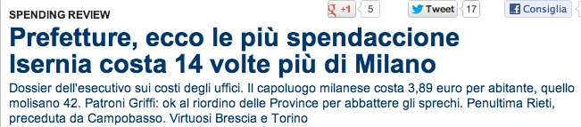In questo caso, la notizia riguarda una piccola onda del mare di virtù nella quale intenderemmo far annegare la politica: la spesa delle prefetture.