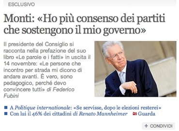 Ma non mi è sfuggito il titolo del libro che Monti, anche lui, ha pubblicato.