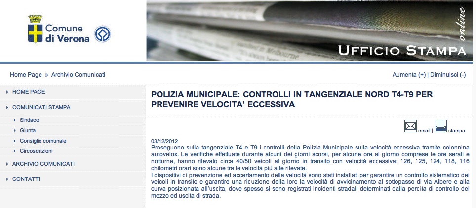 Quello appena riportato è il testo di un comunicato stampa del Comune di Verona. (Clicca per ingrandire)