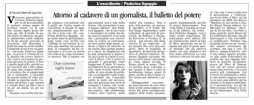 Ma il legame col giornalismo non è solo nella trama. «Da giornalista ti senti spesso ripetere – dice Federica Sgaggio – che il tuo ruolo è raccontare la realtà, ma dopo anni di mestiere ti accorgi che i giornalisti non raccontano la realtà: la costruiscono loro, pezzo dopo pezzo, articolo a fianco di articolo. Io ho voluto fare questo mestiere, e spero di sbagliarmi, ma la mia sensazione è questa, e da qui è nata la voglia di scrivere il libro».